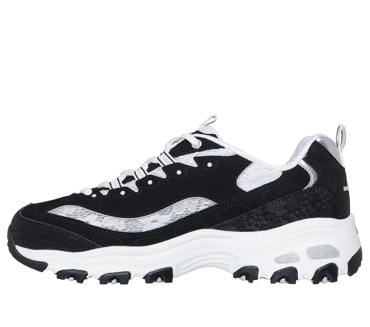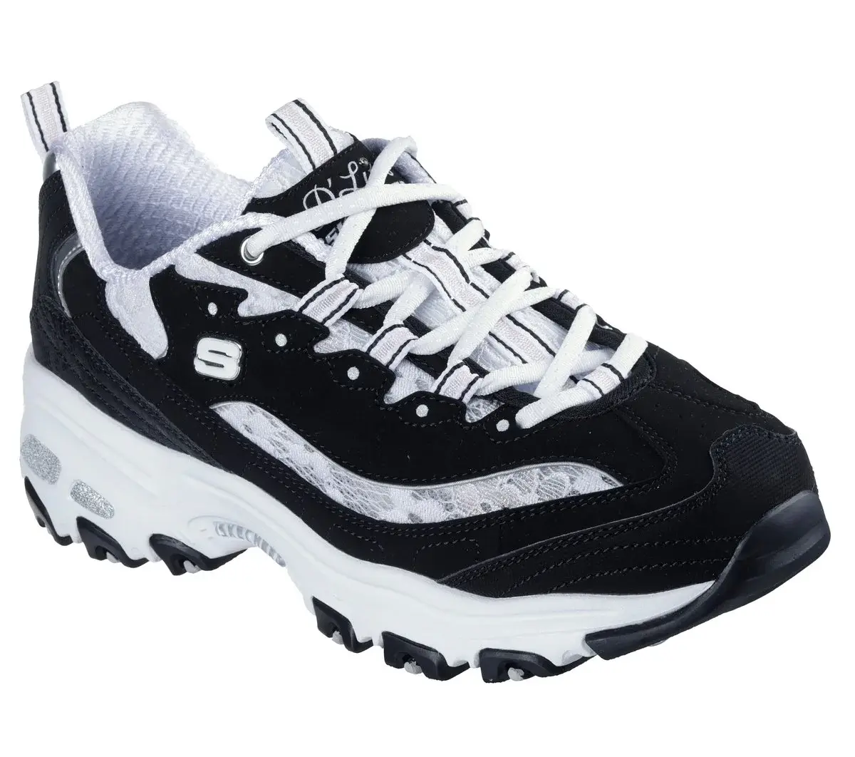 Ein ikonischer Stil wird mit romantischen Details und klassischem Komfort im Skechers D’Lites® – Sunlit Garden neu interpretiert. Dieser modische Schnürschuh verfügt über ein synthetisches Obermaterial mit floralem Spitzenbesatz und eine gepolsterte Skechers Air-Cooled Memory Foam®-Innensohle.