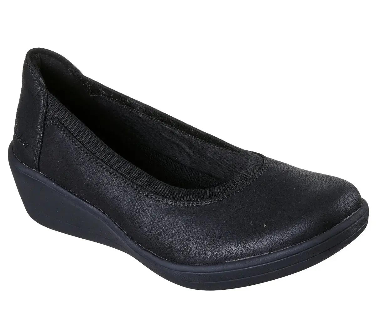 Verbessern Sie Ihren Alltagslook mit erhöhtem Komfort mit Skechers Relaxed Fit®: Newport Wedge. Dieser lässige vegane Skechers-Slipper verfügt über ein Obermaterial aus Stretch Fit®-Mikroleder, eine farblich abgestimmte Keilzwischensohle und unsere charakteristische Skechers Air-Cooled Memory Foam®-Einlegesohle für ganztägigen Tragekomfort.