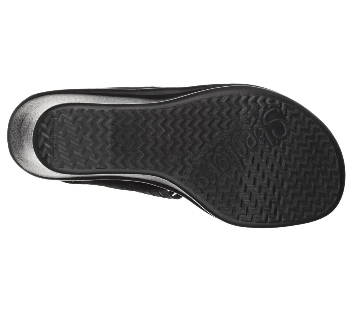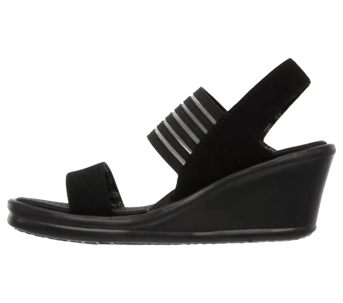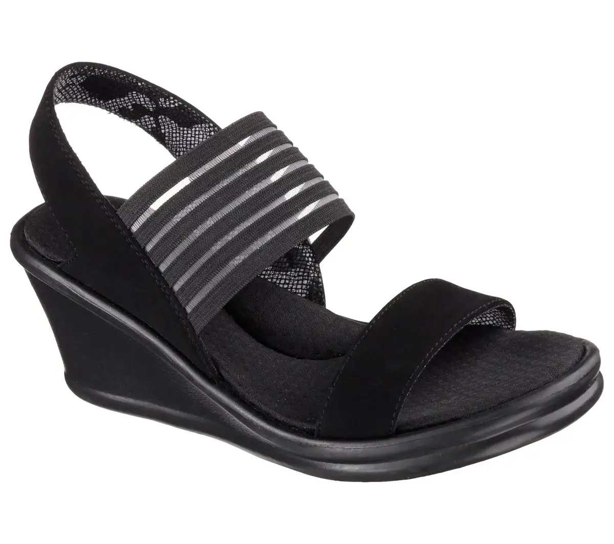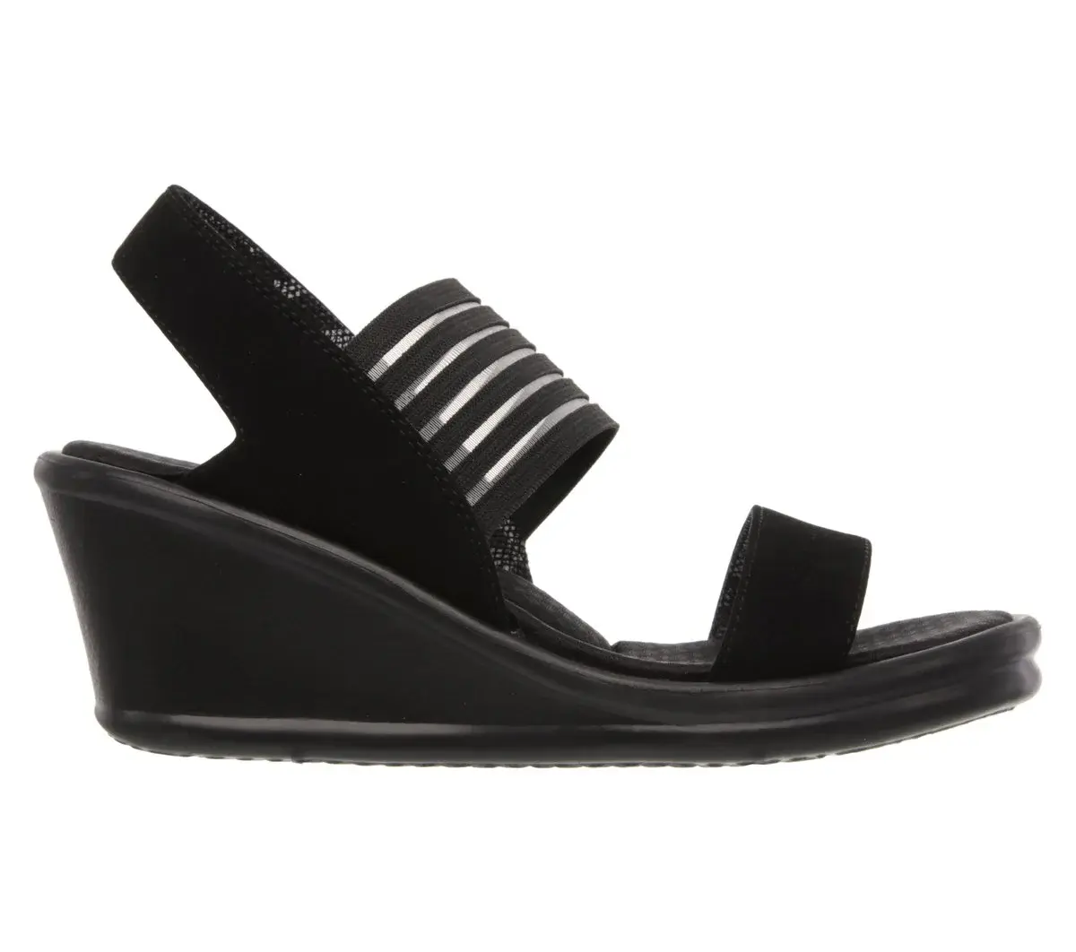 Füllen Sie Ihre Zukunft mit fantastischem Stil und Komfort in den Skechers Cali® Rumblers – Sci Fi. Diese lässigen Slingback-Sandalen mit Keilabsatz haben ein Obermaterial aus Synthetik mit Lederstruktur, einen dehnbaren Ristriemen sowie ein bequemes Memory Foam-Fußbett.