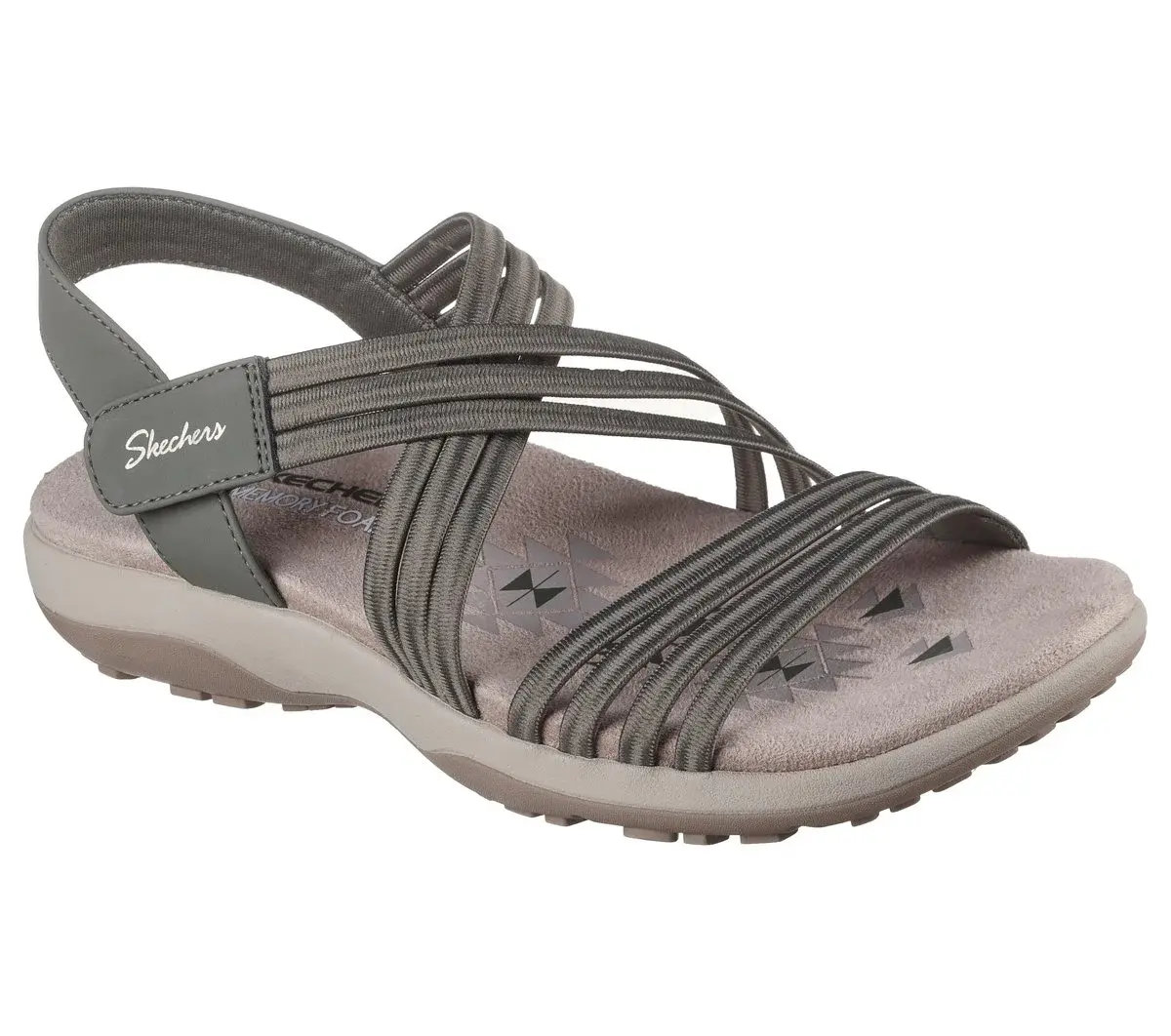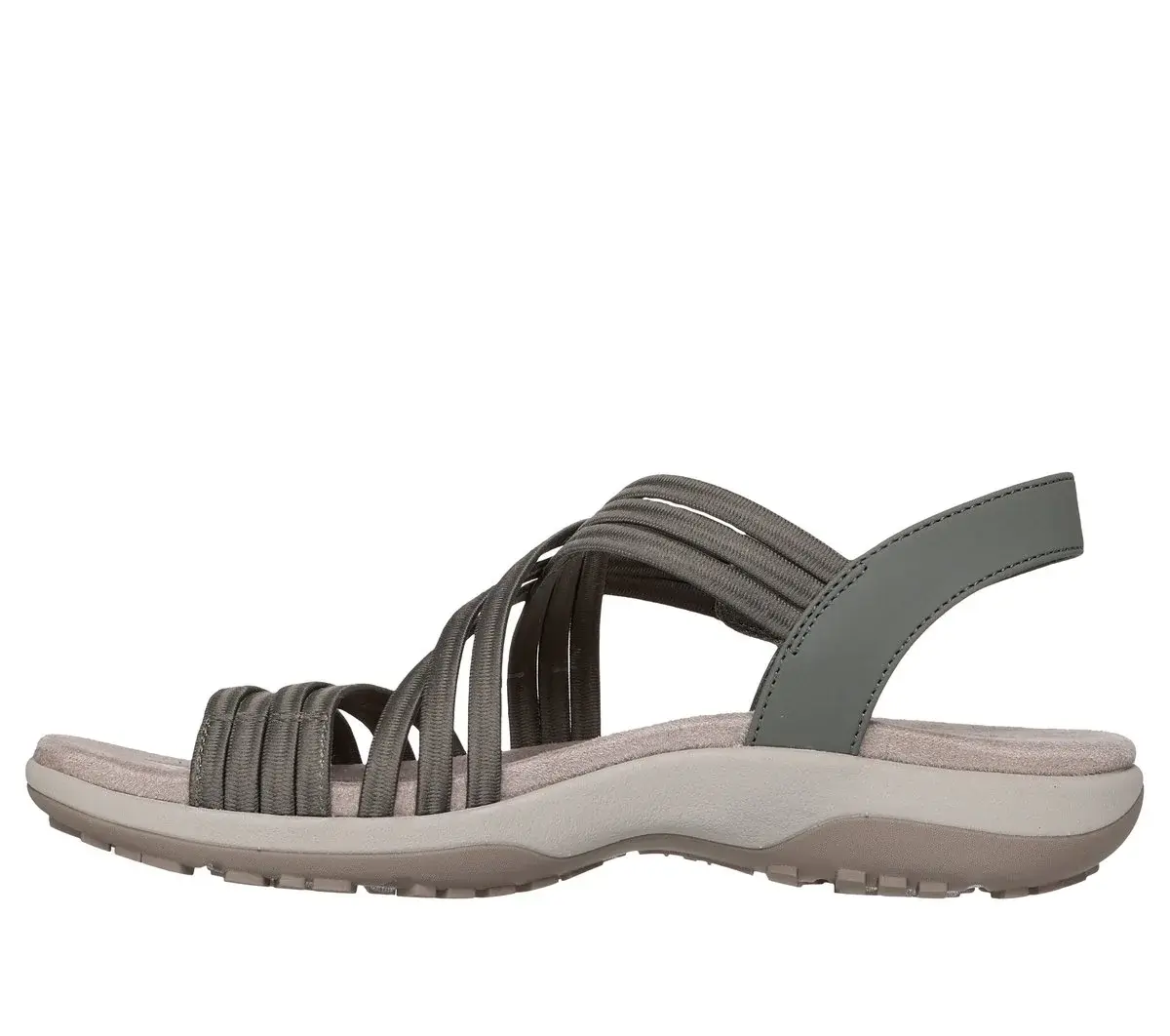Sorgen Sie mit Skechers Reggae® Slim – Sunnyside 2.0 für unsichtbaren Stil und Komfort. Diese Sandale verfügt über ein Obermaterial aus synthetischem und weichem Stretch Fit®-Gewebe mit verstellbarem Riemen sowie ein gepolstertes Skechers Memory Foam®-Fußbett.