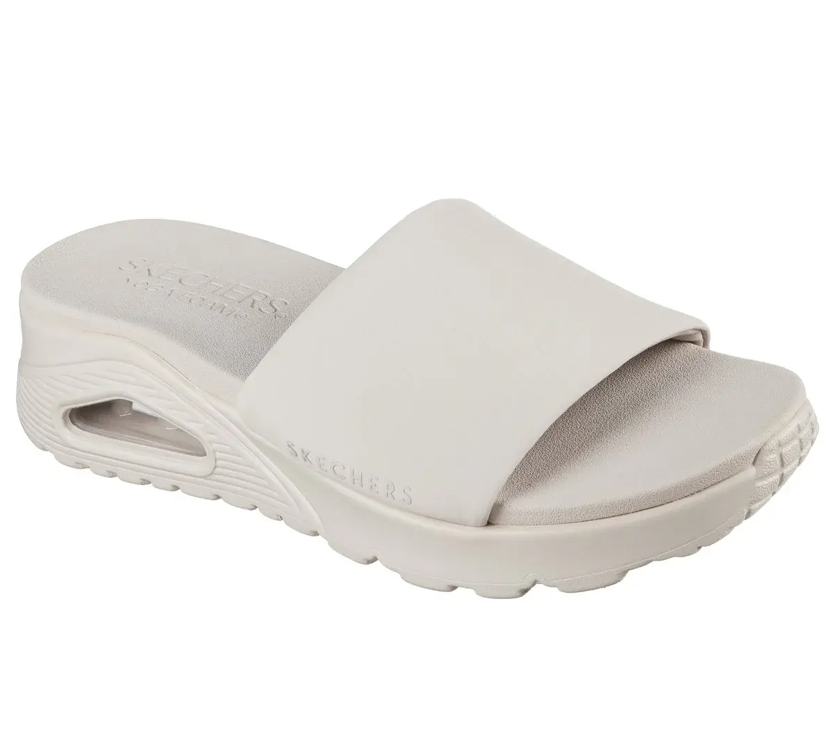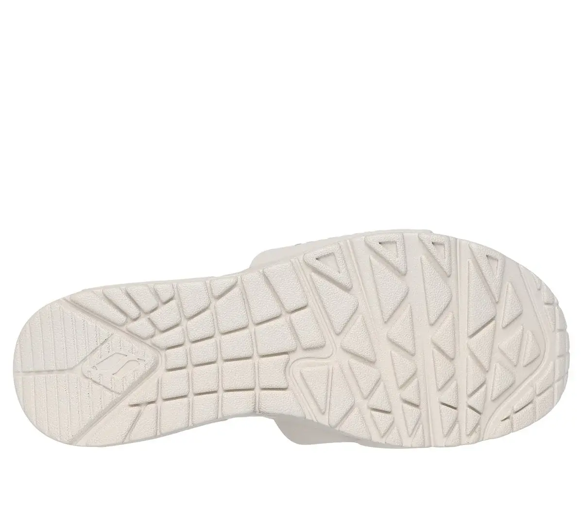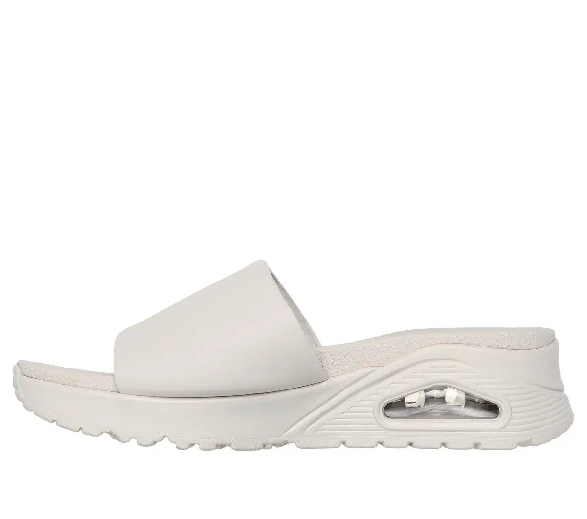 Heizen Sie Ihren sonnigen Tag-Style mit Skechers Uno – Stand Together auf. Inspiriert von unserer legendären Uno-Silhouette verfügen diese veganen Pantoletten über ein gepolstertes Yoga Foam®-Fußbett und eine sichtbare Skech-Air®-Airbag-Zwischensohle.