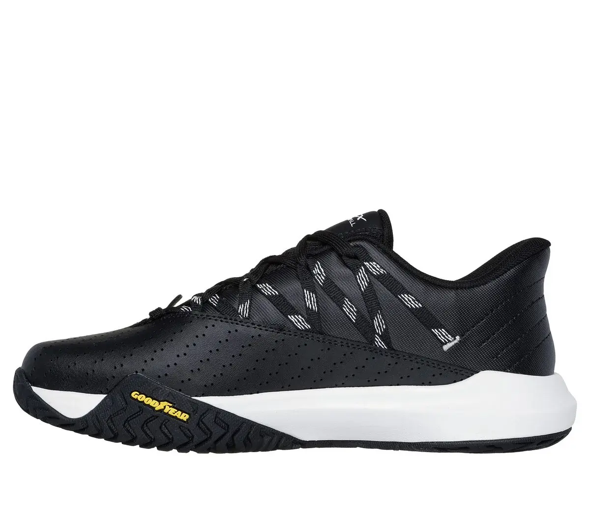 Steigern Sie Ihr Spiel mit Skechers Viper Court Rally™. Dieser Pickleball-Schuh mit Schnürung verfügt über ein Obermaterial aus Mesh und perforiertem Leder sowie eine leichte Move Foam™-Einlegesohle. Abgerundet wird das Design durch eine Laufsohle aus Goodyear® Gold-Compound, die für erhöhte Haltbarkeit sorgt, damit auch Elitespieler kontrollierte Slides speziell auf dem Pickleball-Court-Belag ausführen können.
