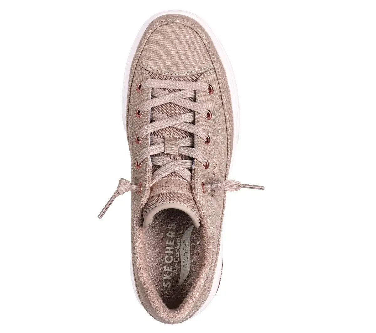 Schlendern Sie mit dem stützenden Komfort des Skechers Street™ Arch Fit® Arcade – Meet Ya There durch den Tag und genießen Sie dabei bequemen Tragekomfort. Dieses Skechers No Tie Fit™-Design verfügt über ein Obermaterial aus Canvas mit gebundenen Schnürsenkeln, eine herausnehmbare Arch Fit®-Einlegesohle und eine leichte, gepolsterte Zwischensohle.