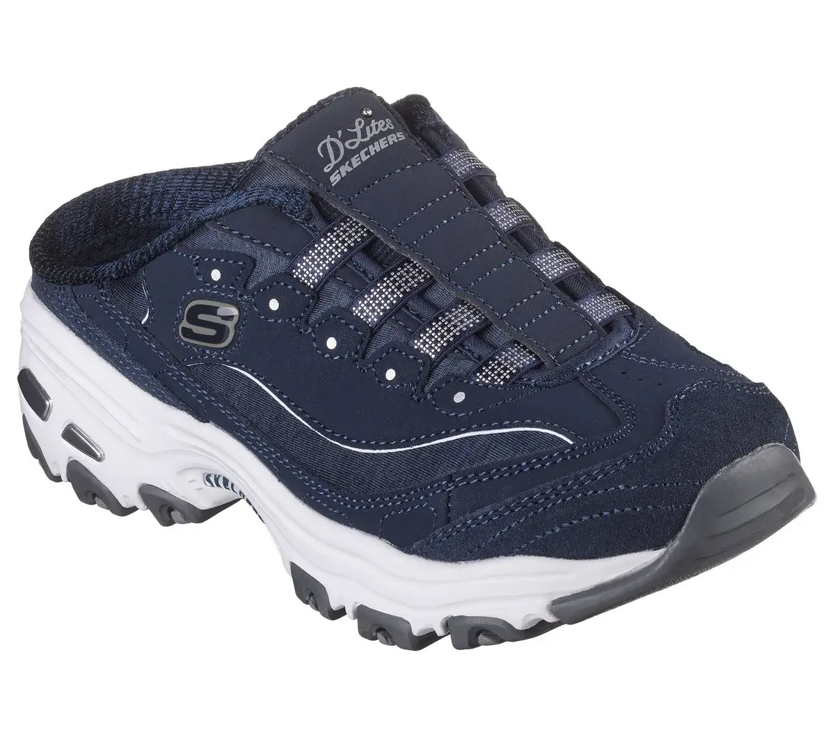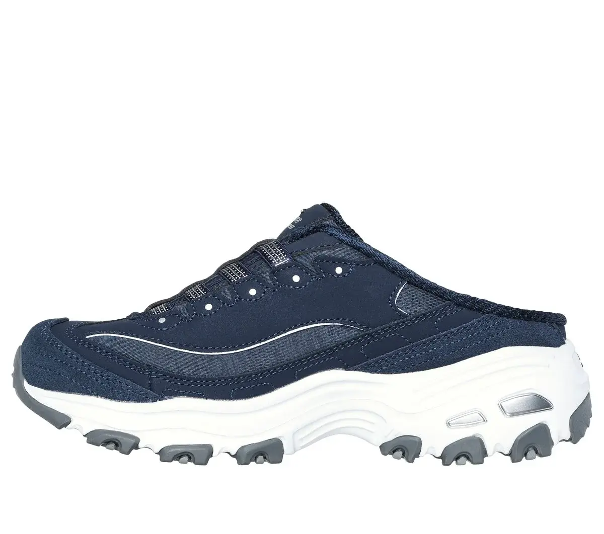 Mit Skechers D’Lites® – Resilient wird ein klassisch-sportlicher Look noch liebenswerter. Diese lässige, sportliche Pantolette besticht durch ein Obermaterial aus glattem Nubukleder und meliertem Mesh sowie eine Air-Cooled Memory Foam®-Innensohle.