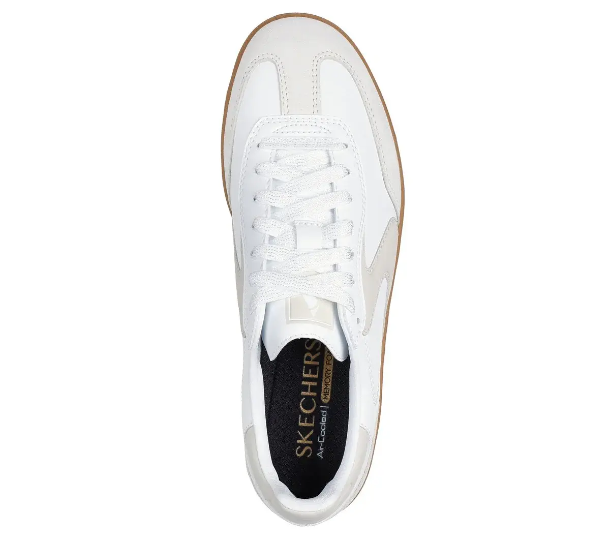 Ein moderner Klassiker trifft auf frischen Komfort im Skechers Hotshot – Kickoff. Dieser Schnürsneaker im Court-Stil verfügt über ein Obermaterial aus Duraleder mit Überzügen aus Schweinswildleder, ein kontrastierendes „S“-Viertel-Logo und eine gepolsterte Skechers Air-Cooled Memory Foam®-Innensohle.
