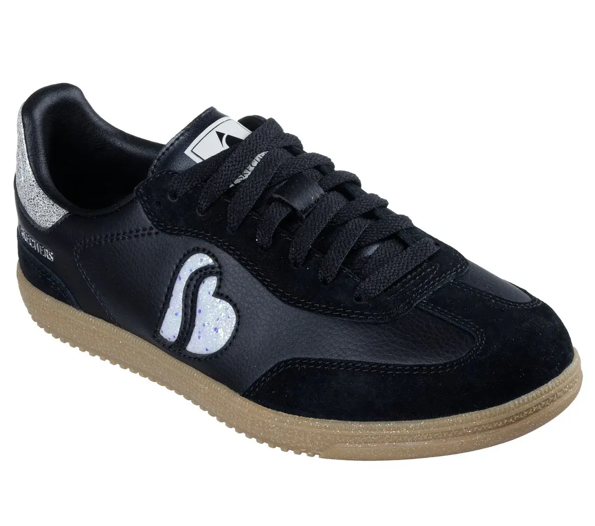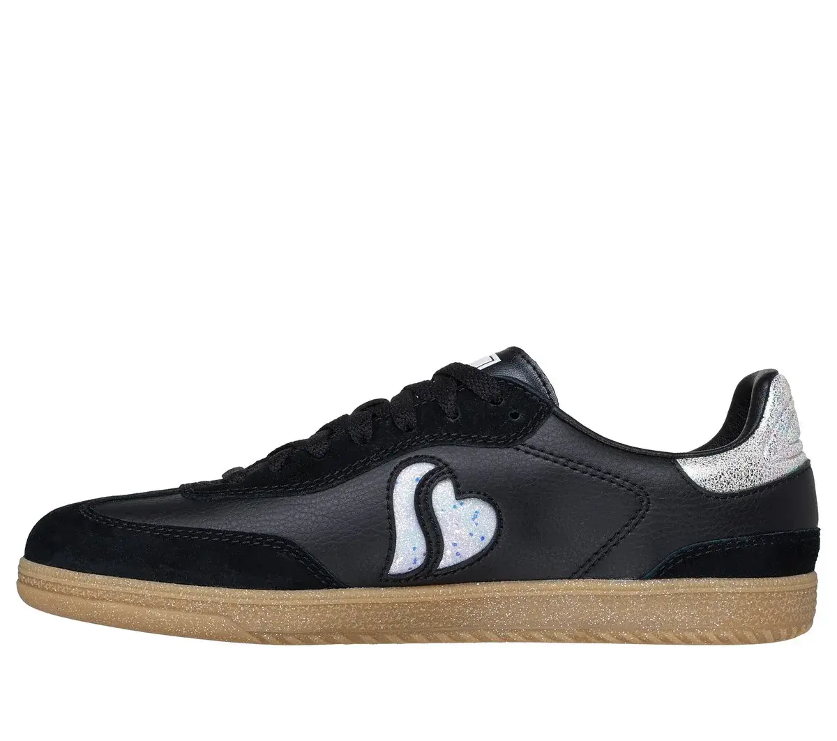 Spüren Sie funkelnden Komfort mit dem Skechers Hotshot – Electric Heart. Dieser Schnürsneaker im Court-Stil verfügt über ein Obermaterial aus Duraleder und Wildleder mit glitzerndem S-Herz-Vierteldetail und einer gepolsterten Skechers Air-Cooled Memory Foam®-Innensohle.