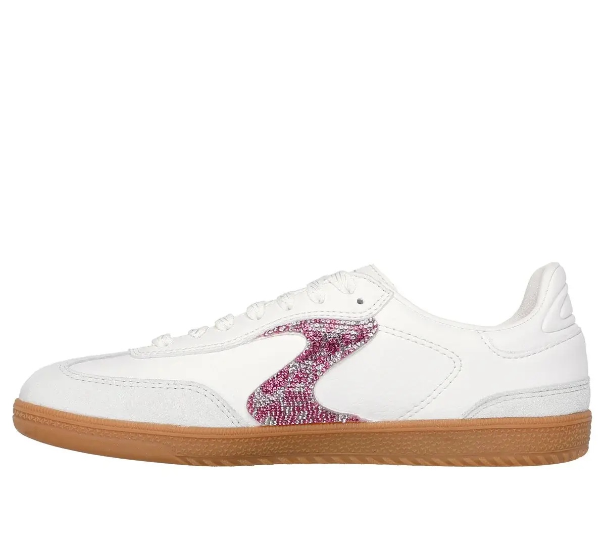 IT’S THE S® Ein moderner Klassiker trifft auf frischen Komfort im Skechers Hotshot – Shimmering Spots. Dieser Schnürsneaker im Court-Stil verfügt über ein Obermaterial aus Duraleder mit Überzügen aus Schweinswildleder, ein mit Strasssteinen verziertes „S“-Viertel-Logo und eine gepolsterte Skechers Air-Cooled Memory Foam®-Innensohle.