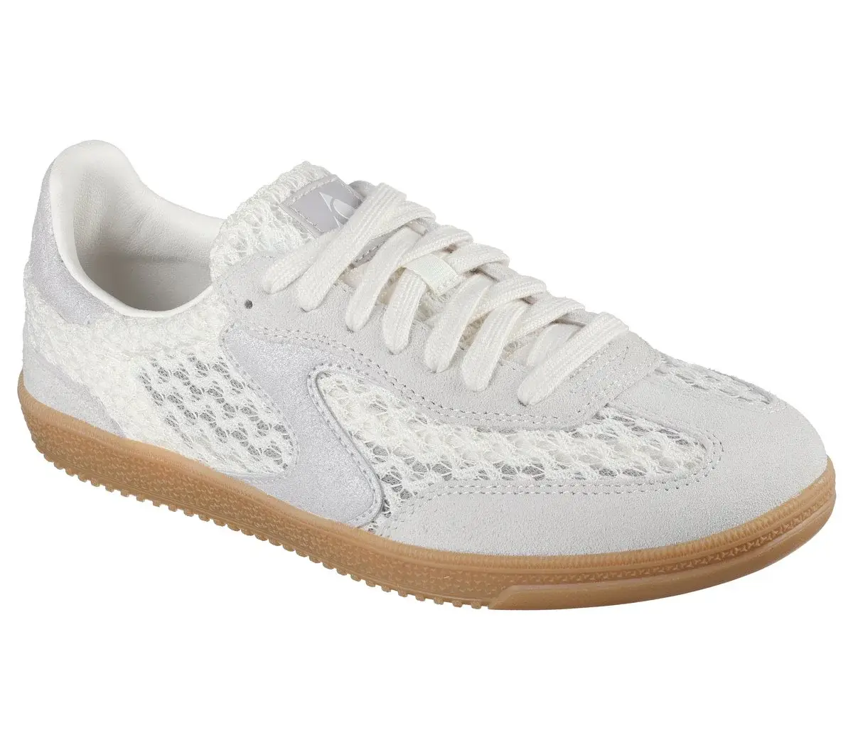 Atmen Sie frei im leichten, romantischen Stil mit dem Skechers Hotshot – Beautiful Flow. Dieser Schnürsneaker im Court-Stil verfügt über ein Obermaterial aus Breathable Comfort® Mesh und Wildleder sowie eine gepolsterte Skechers Air-Cooled Memory Foam®-Innensohle.