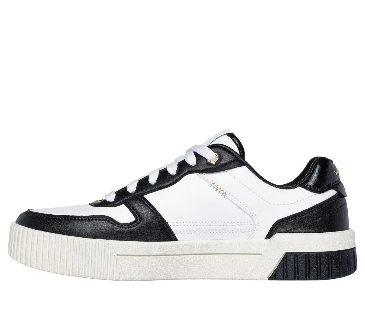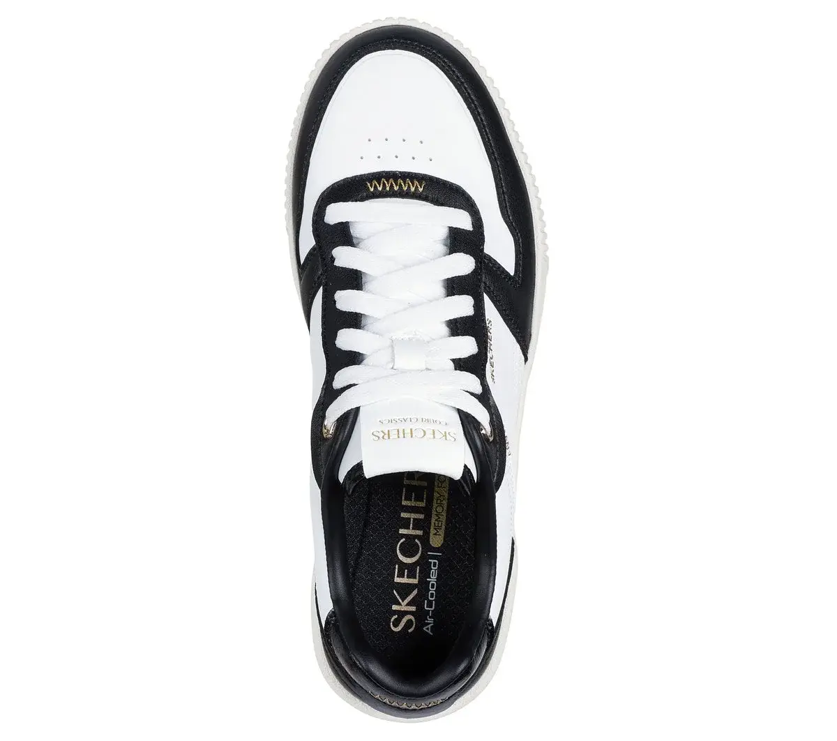 Genießen Sie klassische Court-Looks mit Skechers Jade – dem Besten seiner Klasse. Dieser Low-Top-Schnürschuh verfügt über ein Obermaterial aus Duraleder mit goldfarbenen Overlays und eine gepolsterte Skechers Air-Cooled Memory Foam®-Komfort-Innensohle.