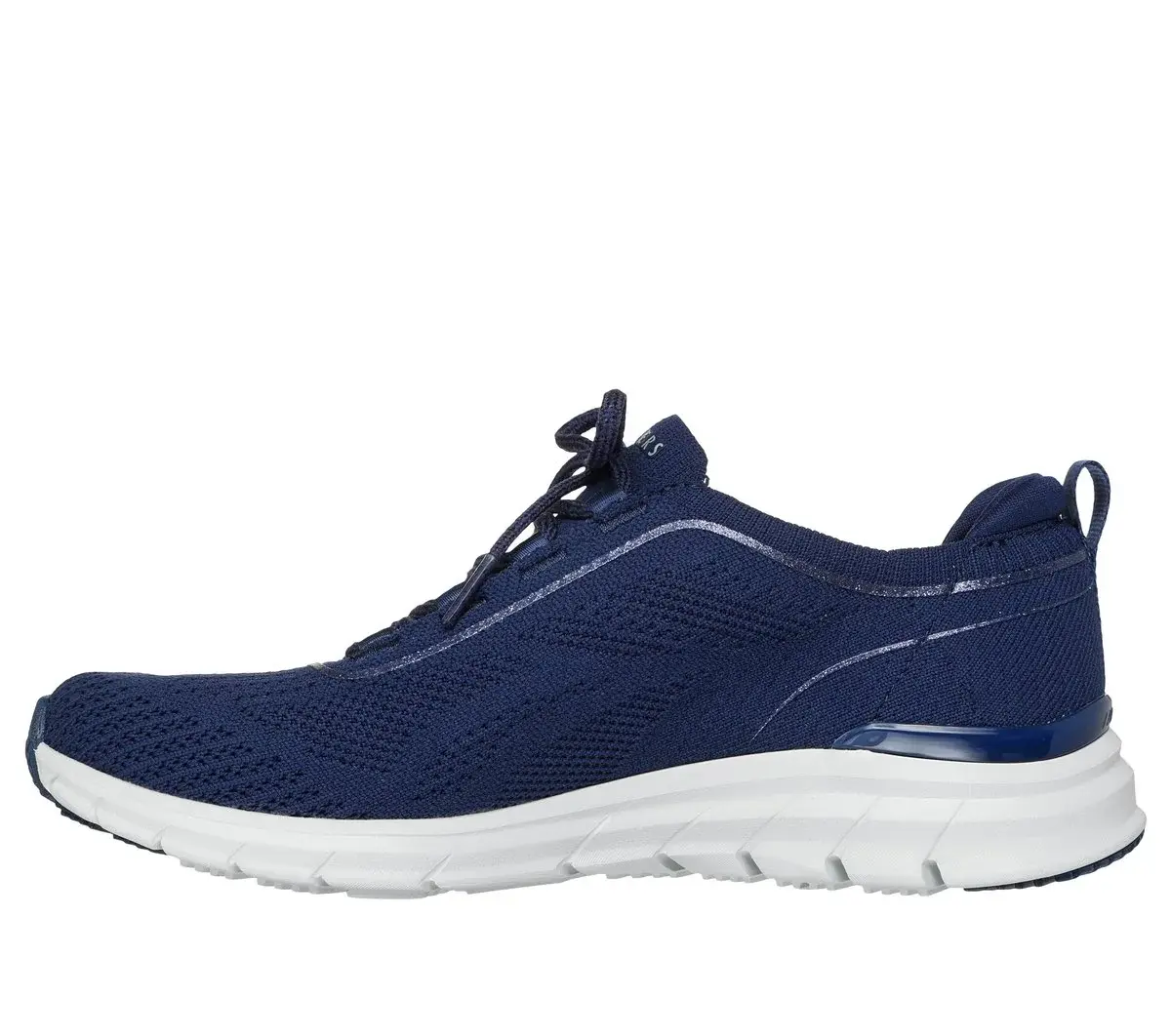 Erleben Sie sportlichen Style und Komfort mit dem Skechers Pure Flex – Midnight Star. Dieser lässige, vegane Schuh verfügt über ein Obermaterial aus Stretch Fit®-Strick mit festen, dekorativen Schnürsenkeln und eine gepolsterte Skechers Air-Cooled Memory Foam®-Innensohle.