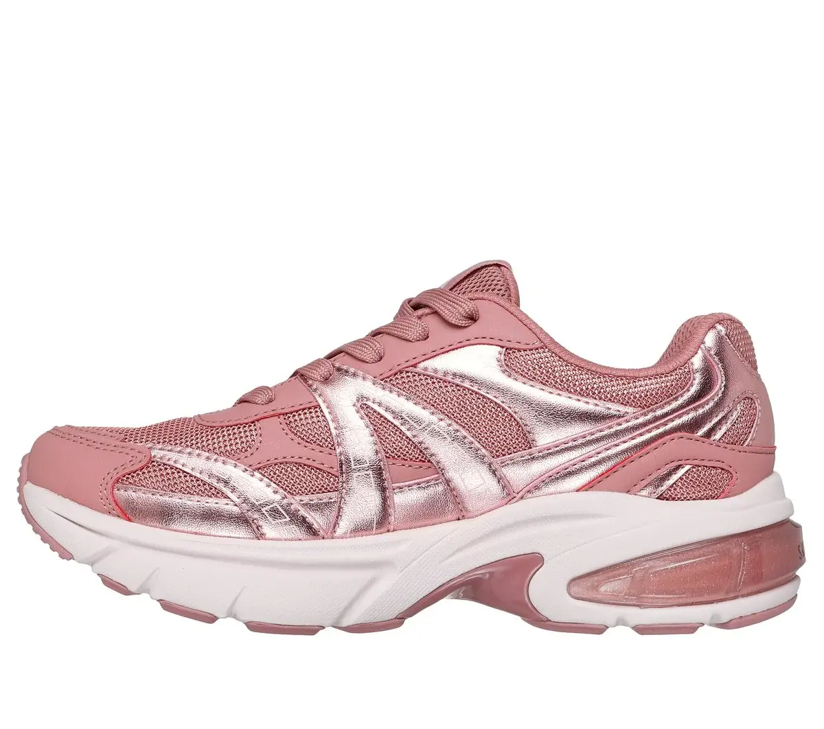 Zeigen Sie Ihren sportlichen Diva-Stil im Skechers Street™ Skechers Shadow – Stellar 90. Dieser modische Schnürsneaker verfügt über ein Obermaterial aus metallischem Duraleder und Mesh mit einer durchsichtigen Zwischensohle und einer gepolsterten Skechers Air-Cooled Memory Foam®-Innensohle.