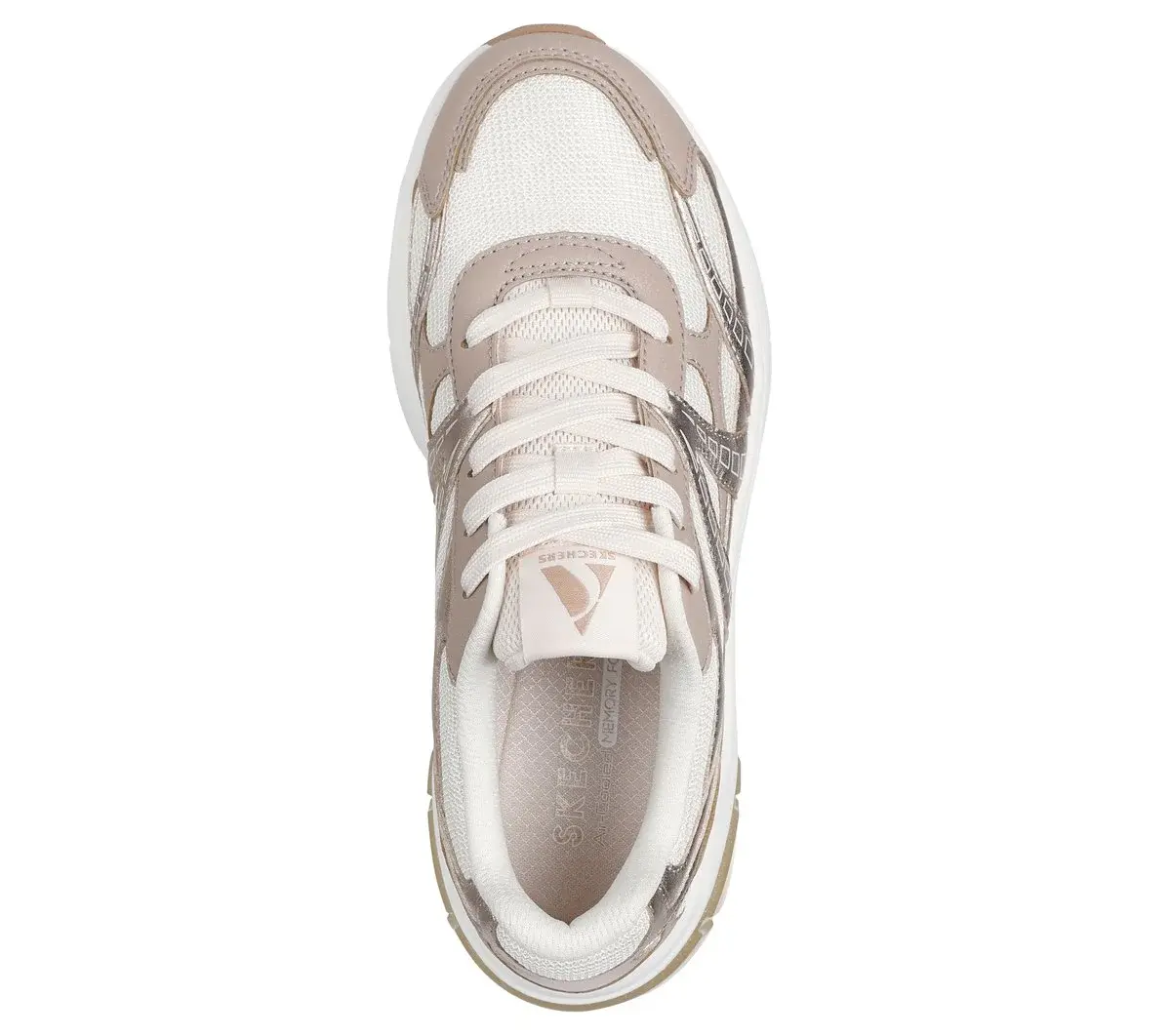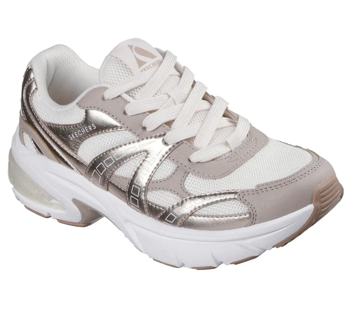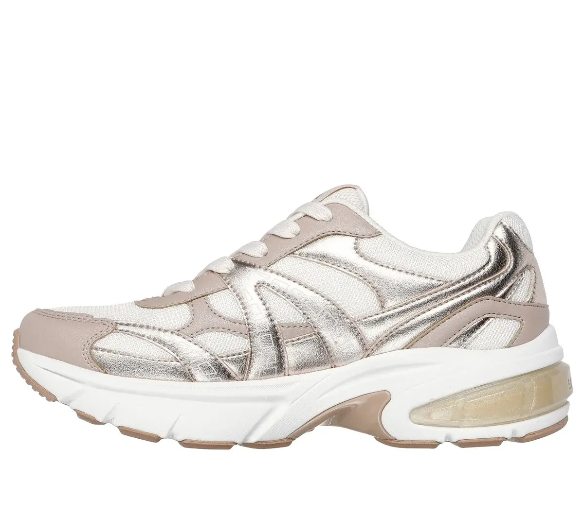 Zeigen Sie Ihren sportlichen Diva-Stil im Skechers Street™ Skechers Shadow – Stellar 90. Dieser modische Schnürsneaker verfügt über ein Obermaterial aus metallischem Duraleder und Mesh mit einer durchsichtigen Zwischensohle und einer gepolsterten Skechers Air-Cooled Memory Foam®-Innensohle.