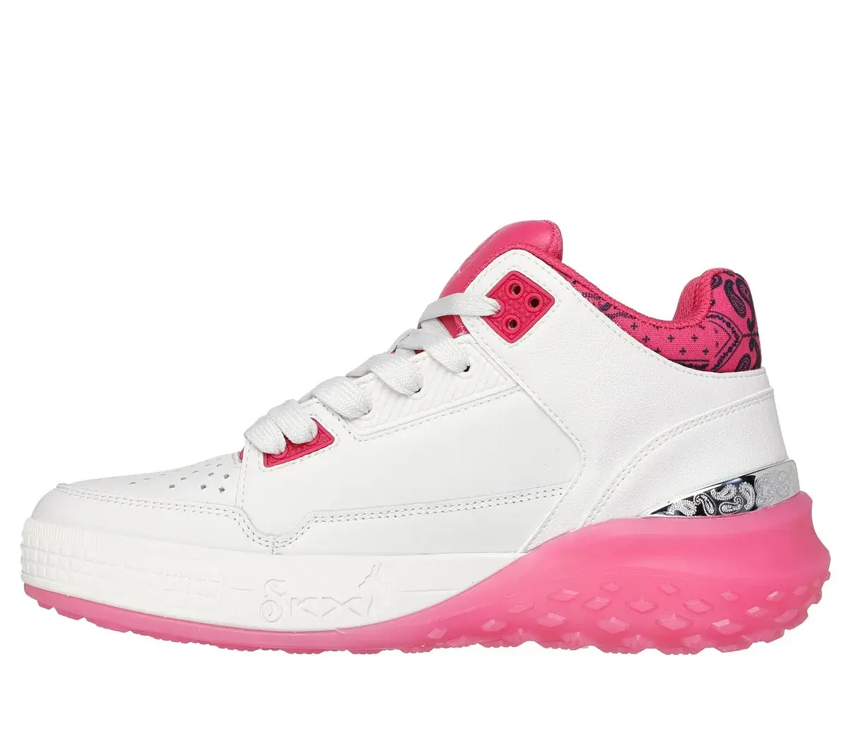 Ein absoluter Hingucker: Skechers x Snoop Dogg: Sizzle – Buckets OG. Dieser coole Mid-Top-Court-Style ist so einzigartig wie der D-O-Double G selbst. Mit glattem, perforiertem Obermaterial aus hochwertigem Leder mit Kragendetail im Paisley-Muster, metallischem Fersenbesatz und einer superweichen Skechers Air-Cooled Memory Foam®-Einlegesohle.