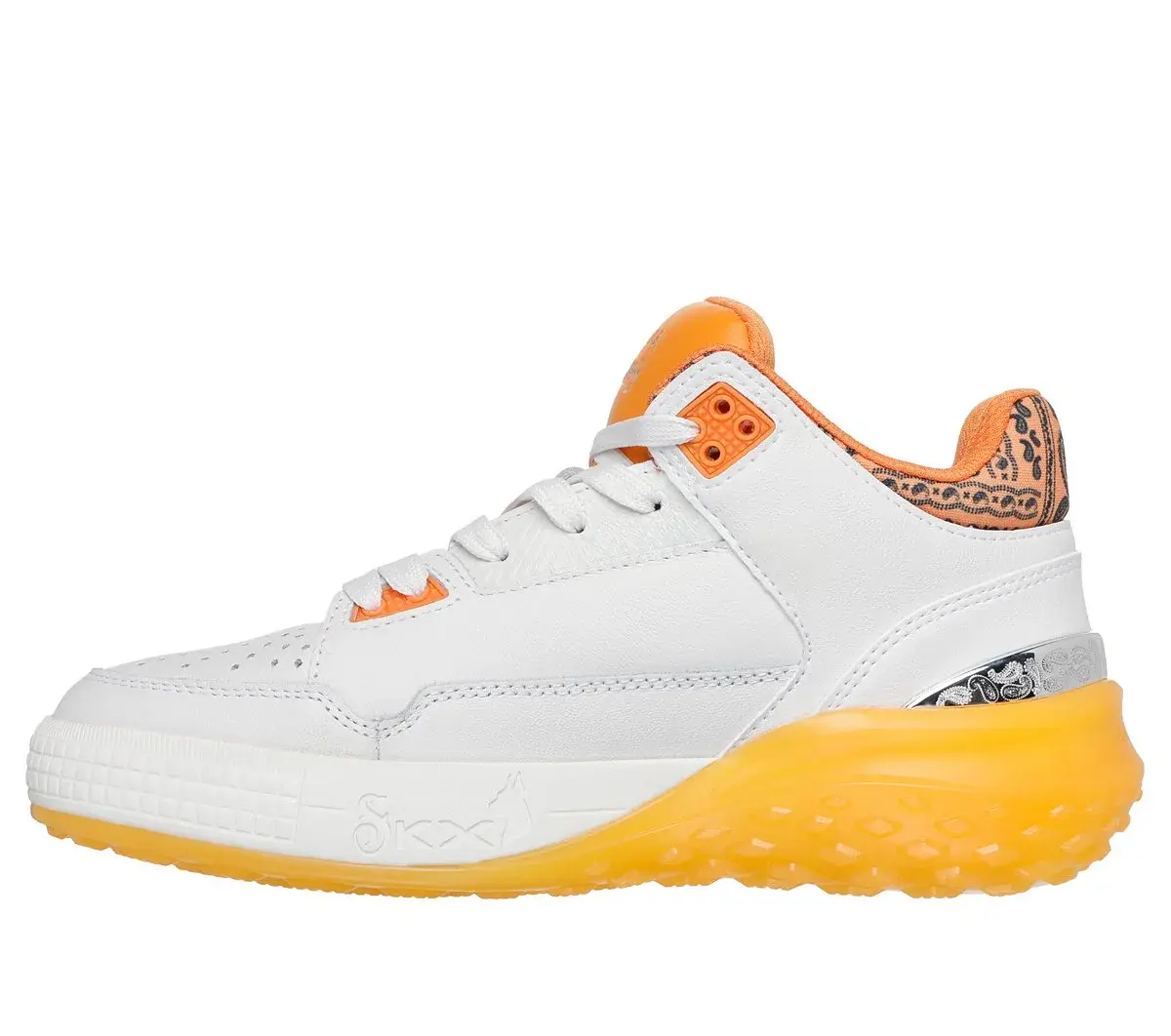 Ein absoluter Hingucker: Skechers x Snoop Dogg: Sizzle – Buckets OG. Dieser coole Mid-Top-Court-Style ist so einzigartig wie der D-O-Double G selbst. Mit glattem, perforiertem Obermaterial aus hochwertigem Leder mit Kragendetail im Paisley-Muster, metallischem Fersenbesatz und einer superweichen Skechers Air-Cooled Memory Foam®-Einlegesohle.