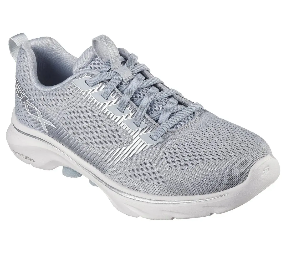 Gehen Sie in technisch unterstütztem Komfort mit Skechers GO WALK 7™ – Hailey. Dieser Laufschuh verfügt über ein Obermaterial aus technischem Mesh mit haptischem „SKX“-Aufdruck, elastische Schnürsenkel, eine Skechers Air-Cooled Goga Mat™-Einlegesohle, eine leichte ULTRA GO®-Dämpfung und eine Hyper Pillar Technology™ mit hoher Rückfederung für zusätzlichen Halt.