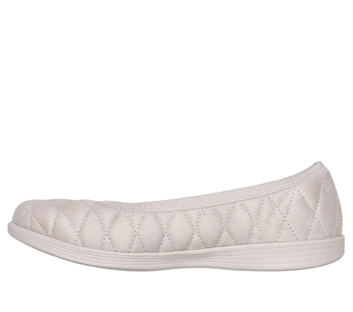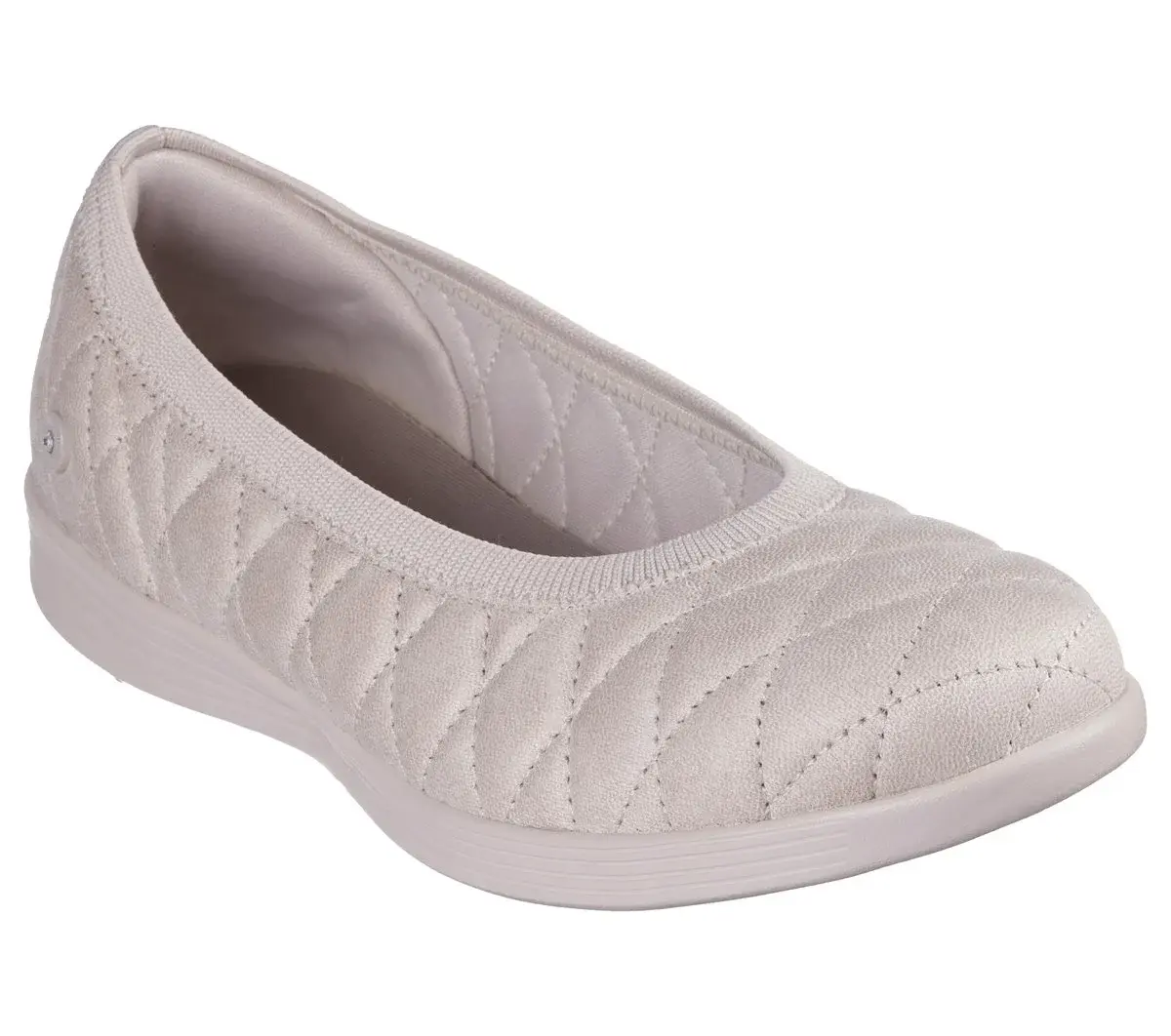 Müheloser Stil und angenehmer Tragekomfort vereinen sich im Skechers On-the-GO Dreamy – Sundance. Dieser Ballerina verfügt über ein gestepptes Obermaterial aus veganem Leder mit Strickkragen, eine Skechers Air-Cooled Goga Mat™-Einlegesohle und eine leichte, gepolsterte ULTRA GO®-Zwischensohle.