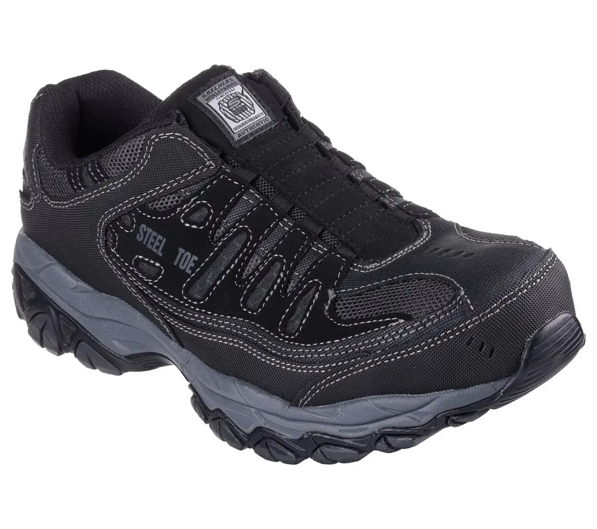 Entdecken Sie Schutz, Komfort und Stil auf einfachste Weise mit Skechers Work™: Cankton – Ebbitt ST. Dieses leicht anzuziehende Utility-Modell verfügt über ein strapazierfähiges Obermaterial aus Leder, Synthetik und Mesh, eine schnürsenkellose Passform, eine Skechers Memory Foam™-Einlegesohle und eine Sicherheitskappe aus Stahl.