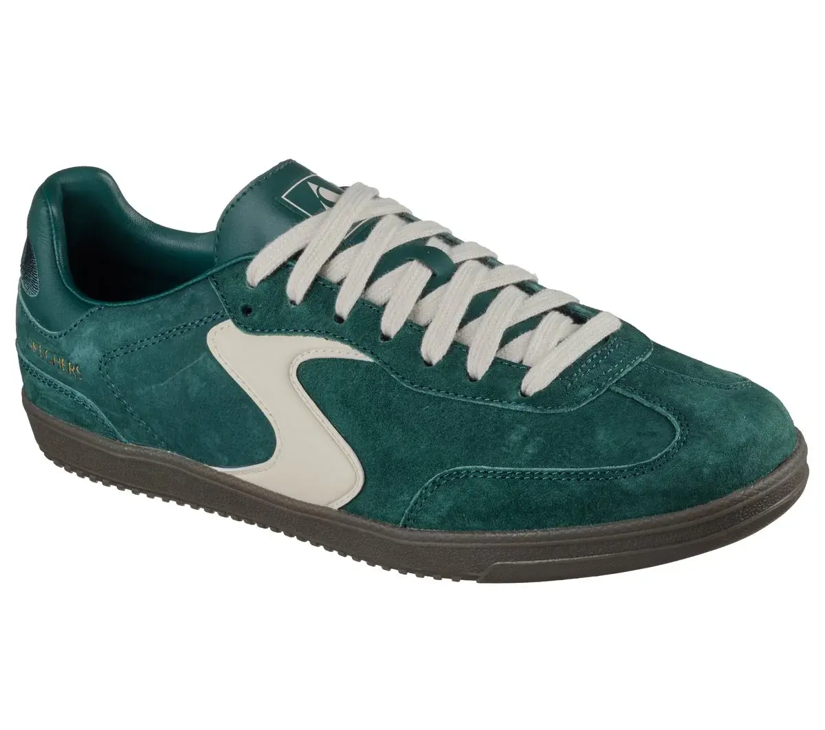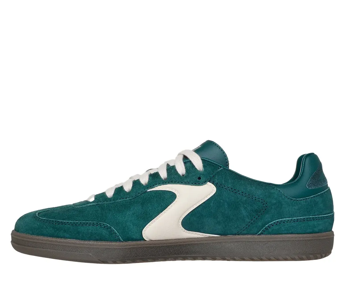 Klassischer Court-Style trifft auf leichten Komfort im Skechers Hotshot – Azir. Dieses flache Schnürmodell verfügt über ein Obermaterial aus Schweinswildleder mit Kunstleder-Overlays und einem Viertel-S-Logo sowie eine gepolsterte Skechers Air-Cooled Memory Foam®-Innensohle.