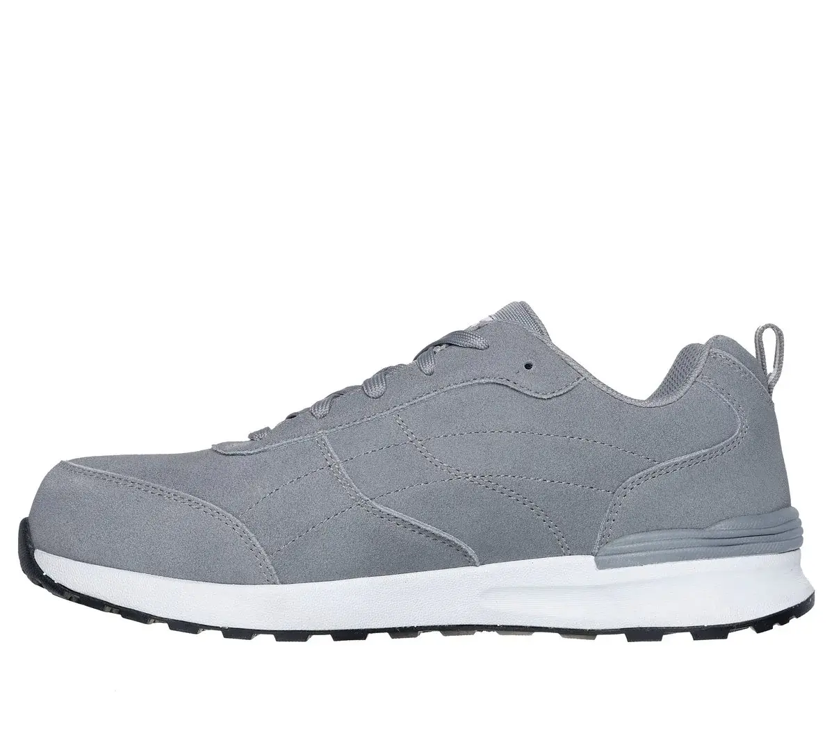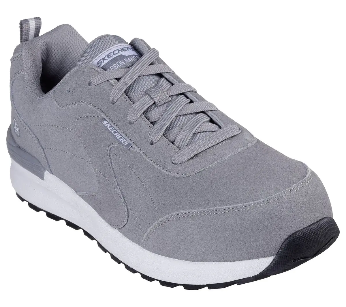 Beginnen Sie Ihre Schicht mit trittsicherem, schützendem Komfort mit Skechers Work™: Bulklin – Atlis ESD. Dieser rutschfeste Arbeitssneaker hat ein Obermaterial aus echtem Wildleder mit Schnürung vorne, eine gepolsterte Skechers Air-Cooled Memory Foam®-Innensohle und eine nichtmetallische Carbon-Nano-Sicherheitskappe.