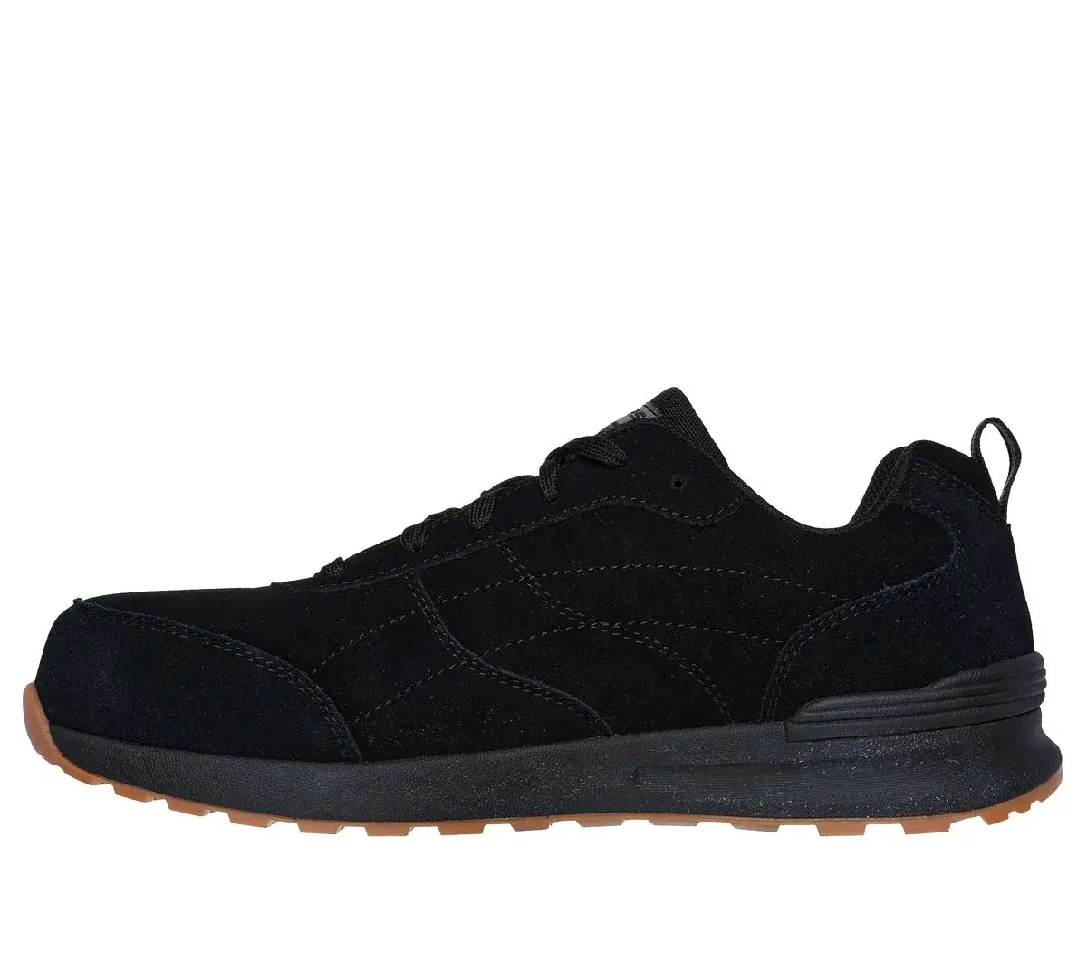 Beginnen Sie Ihre Schicht mit trittsicherem, schützendem Komfort mit Skechers Work™: Bulklin – Atlis ESD. Dieser rutschfeste Arbeitssneaker hat ein Obermaterial aus echtem Wildleder mit Schnürung vorne, eine gepolsterte Skechers Air-Cooled Memory Foam®-Innensohle und eine nichtmetallische Carbon-Nano-Sicherheitskappe.