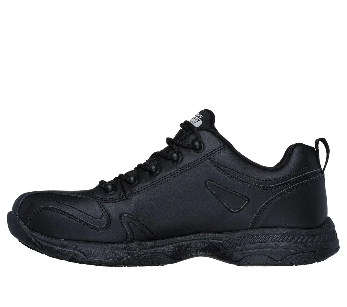 Sportlicher Stil, ganztägige Sicherheit und Komfort vereinen sich beim Tragen von Skechers Work™ Relaxed Fit®: Dighton – Strits. Dieser geräumige Schnürschuh verfügt über ein glattes Obermaterial aus Synthetik mit einer Skechers Memory Foam™-Einlegesohle und einer rutschfesten Laufsohle.