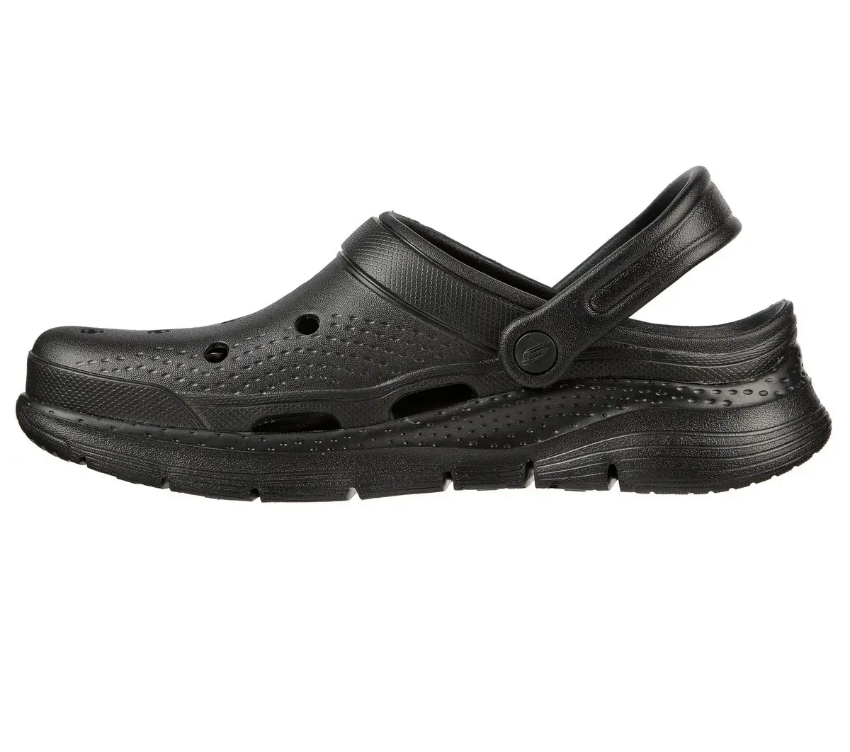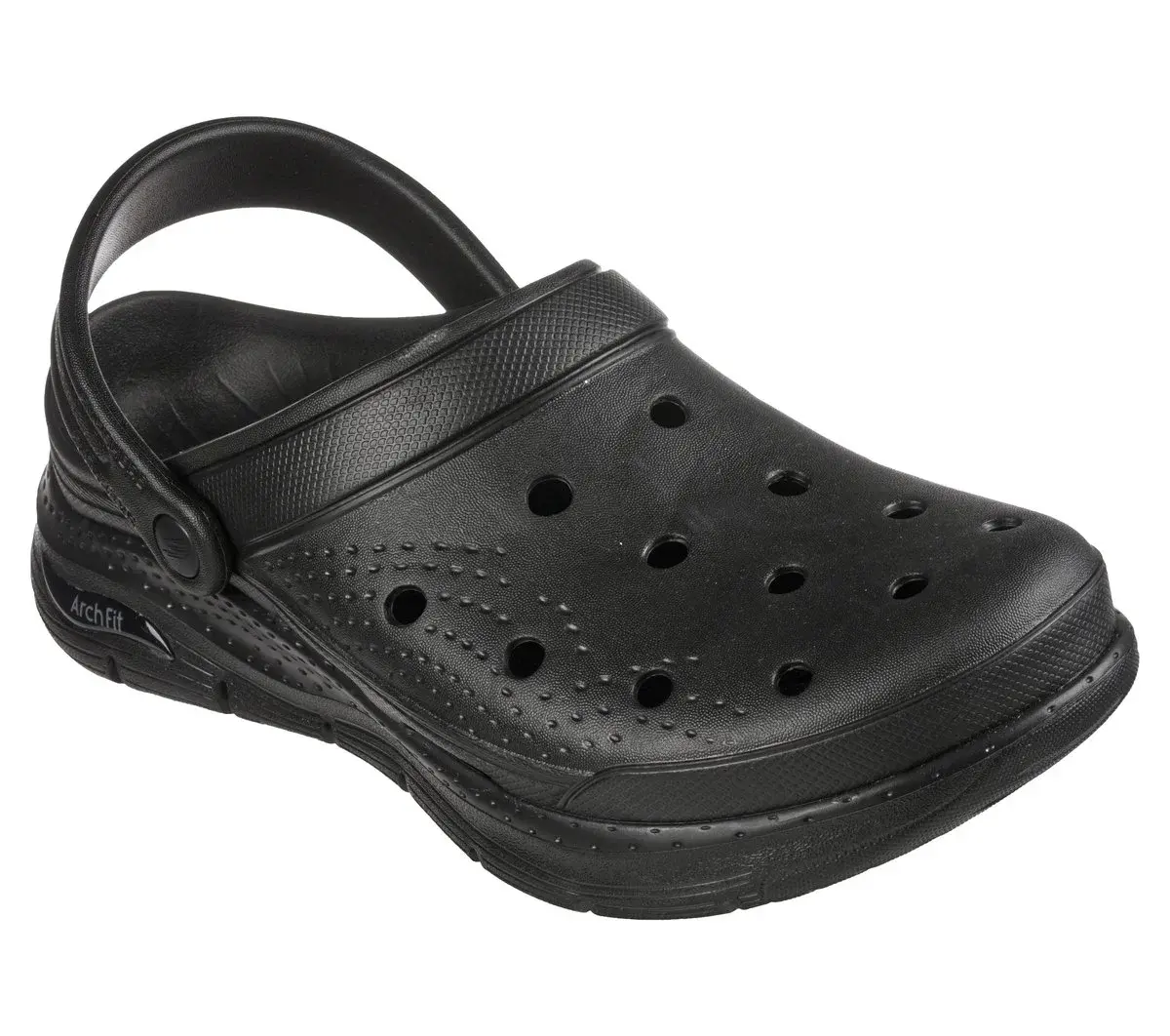 Gehen Sie den ganzen Tag mit stützendem Komfort in den Skechers Foamies: Arch Fit® – Valiant. Dieser perforierte, geformte Clog verfügt über ein konturiertes Arch Fit®-Fußbett und eine Laufsohle mit doppelter Dichte.