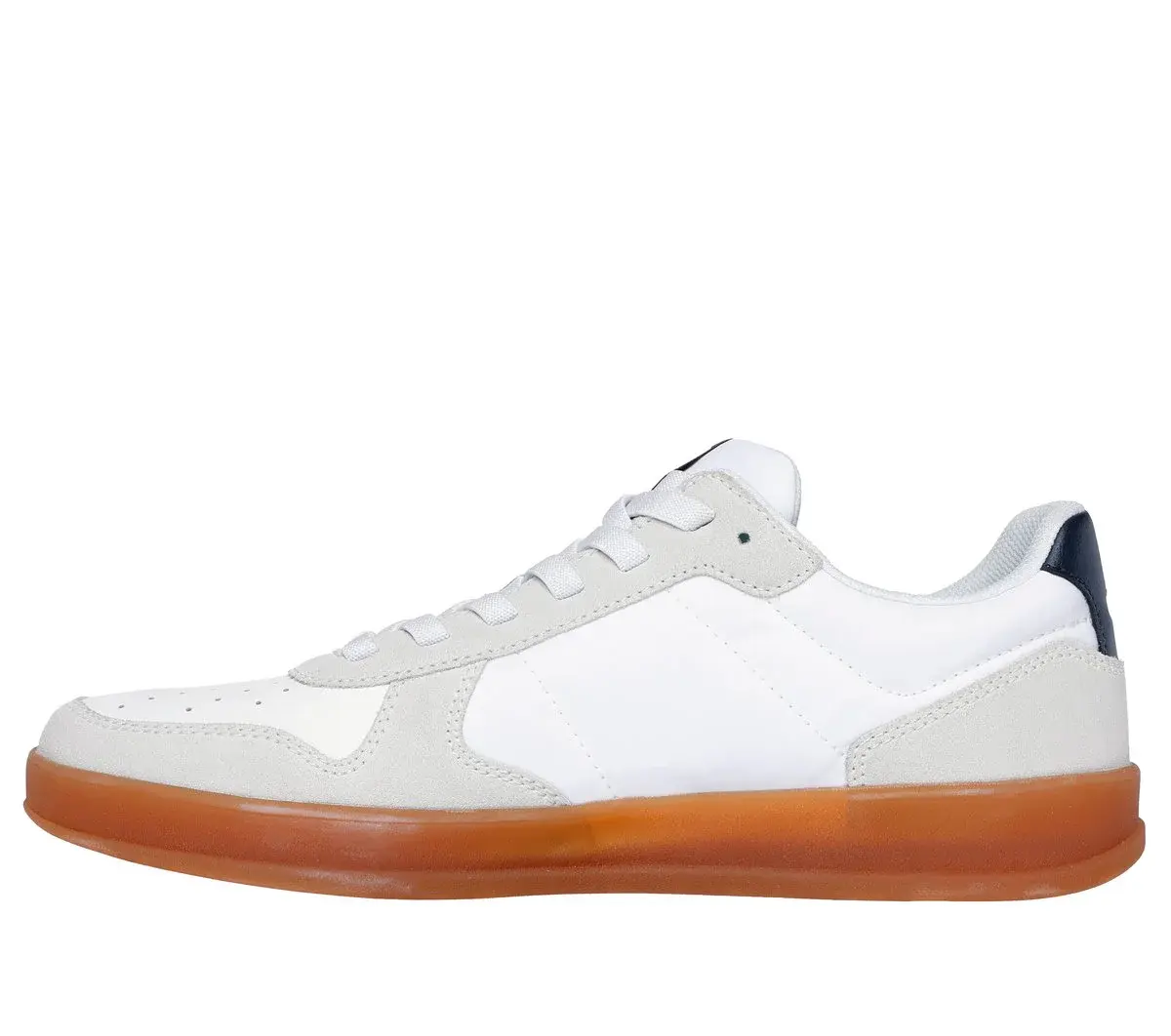 Ein frischer Klassiker vereint sich mit atmungsaktivem Komfort im trendigen Skechers New Wave Cup – Calven. Dieser Court-Stil verfügt über ein Obermaterial aus Leder und Mesh mit Wildlederüberzügen, elastischen Schnürsenkeln und einer mit Holzkohle durchsetzten Skechers Air-Cooled Memory Foam®-Einlegesohle.