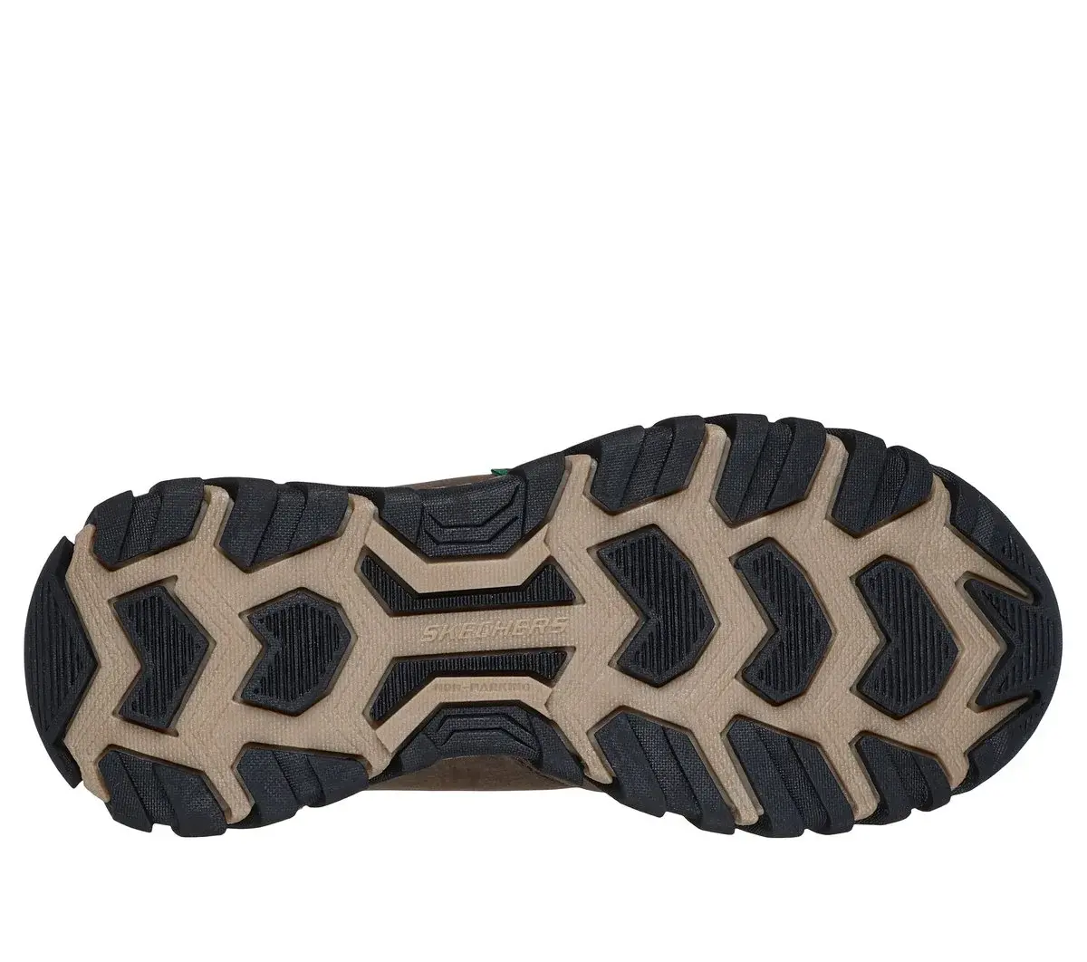 Mach dich bereit für Outdoor-Abenteuer mit dem Skechers x John Deere: Rugged Ranger – Tractor-Brisk! Dieses schnürlose Modell verfügt über ein Obermaterial aus Synthetik mit einem John Deere Traktor-Anhänger und einer gepolsterten Skechers Air-Cooled Memory Foam®-Innensohle.