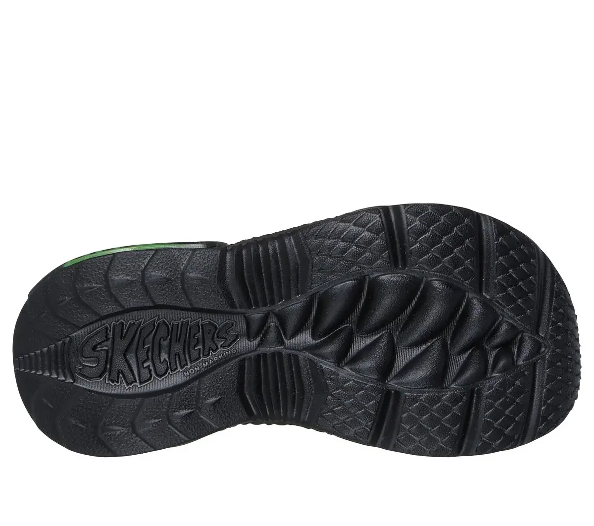 Mit dem Skechers Creature-Splash ist richtig Spaß angesagt. Diese sportliche Sandale mit Kreaturenmotiv hat ein Obermaterial aus Synthetik, einen adaptiven Skechers-Verschluss und ein Creature-Tech-Element in der Zwischensohle.