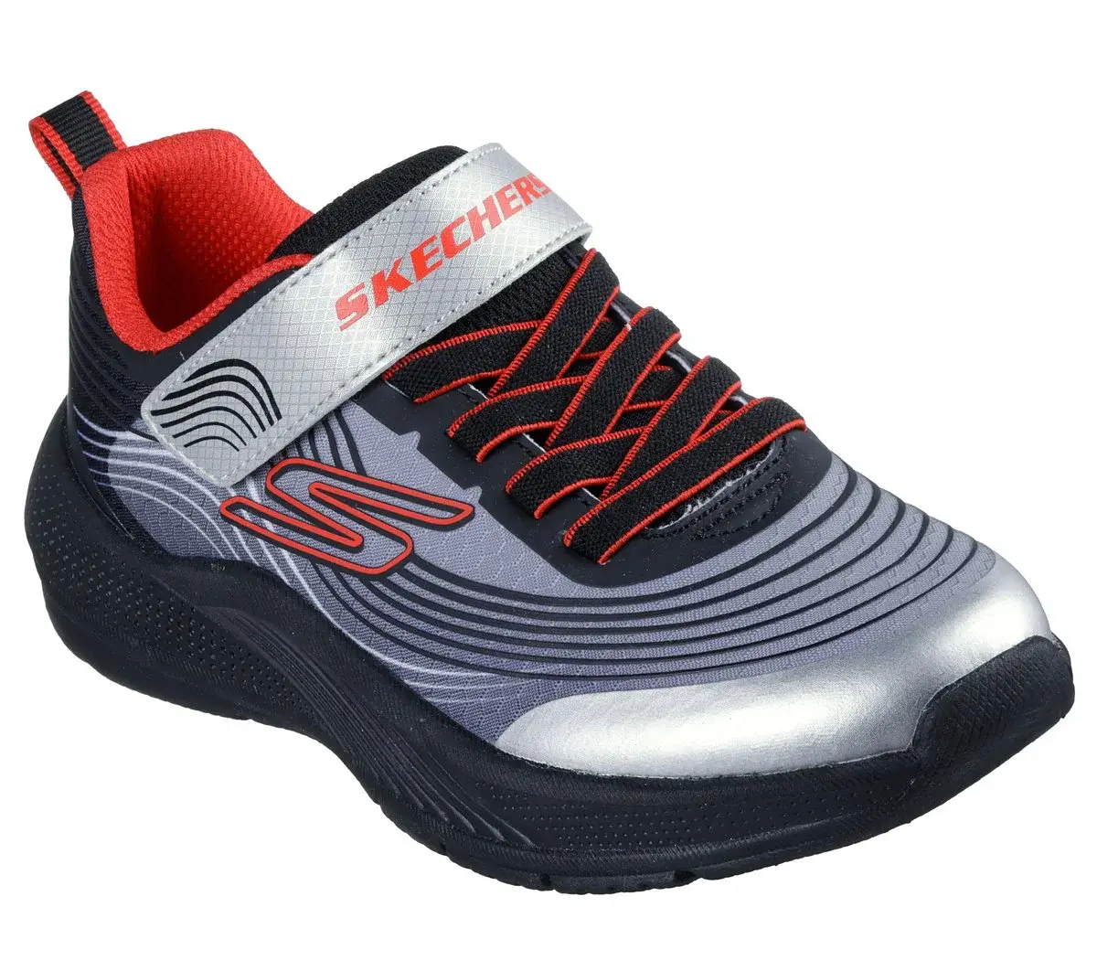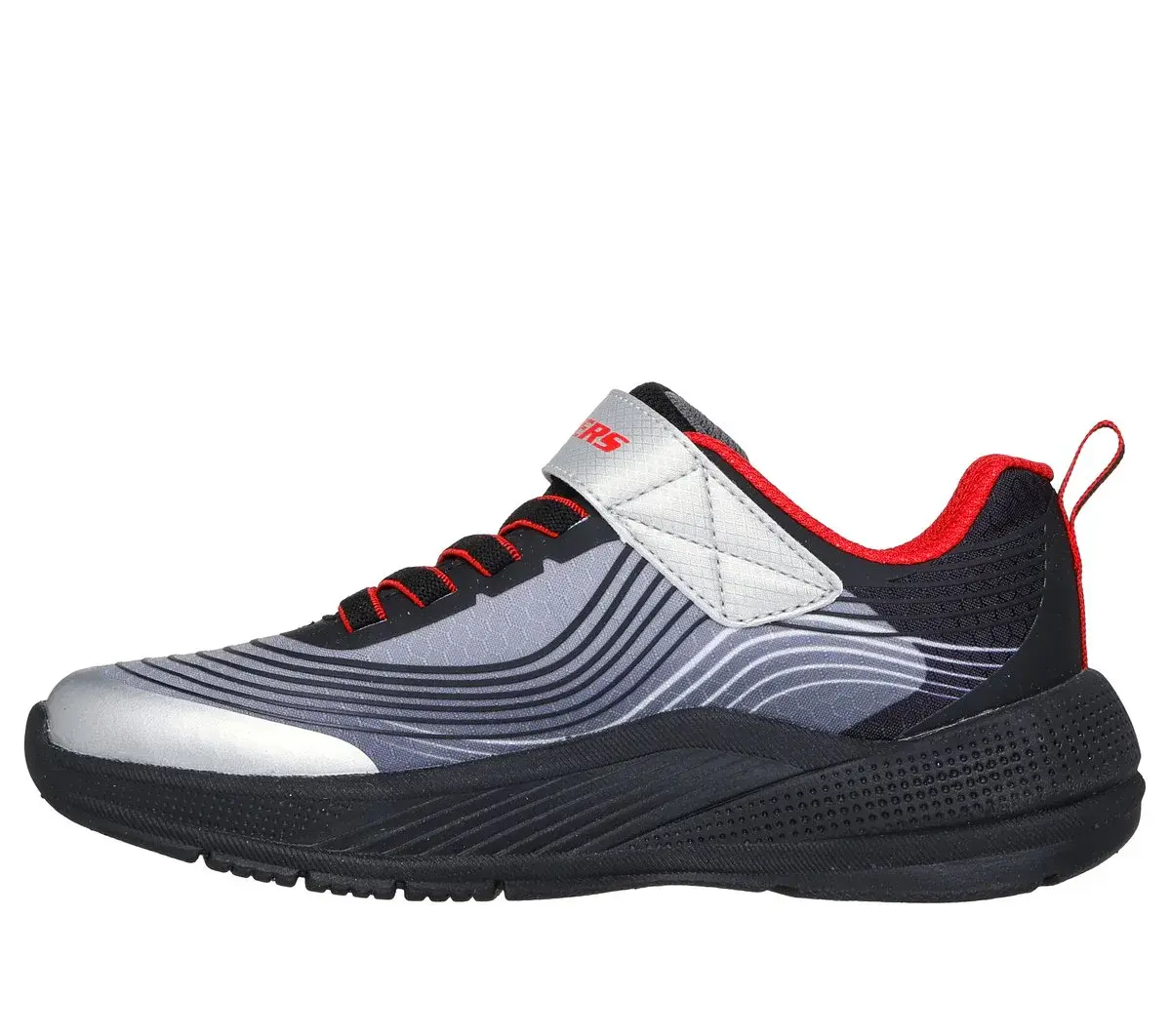 Werden Sie aktiv und tragen Sie den Skechers Microspec Advance mit seinem farbenfrohen und witzigen Stil. Dieses sportliche Design besticht durch ein mehrfarbiges Mesh-Obermaterial mit haptischem Druck, elastische Schnürsenkel, einen adaptiven Skechers-Verschluss und eine gepolsterte Komfort-Innensohle.
