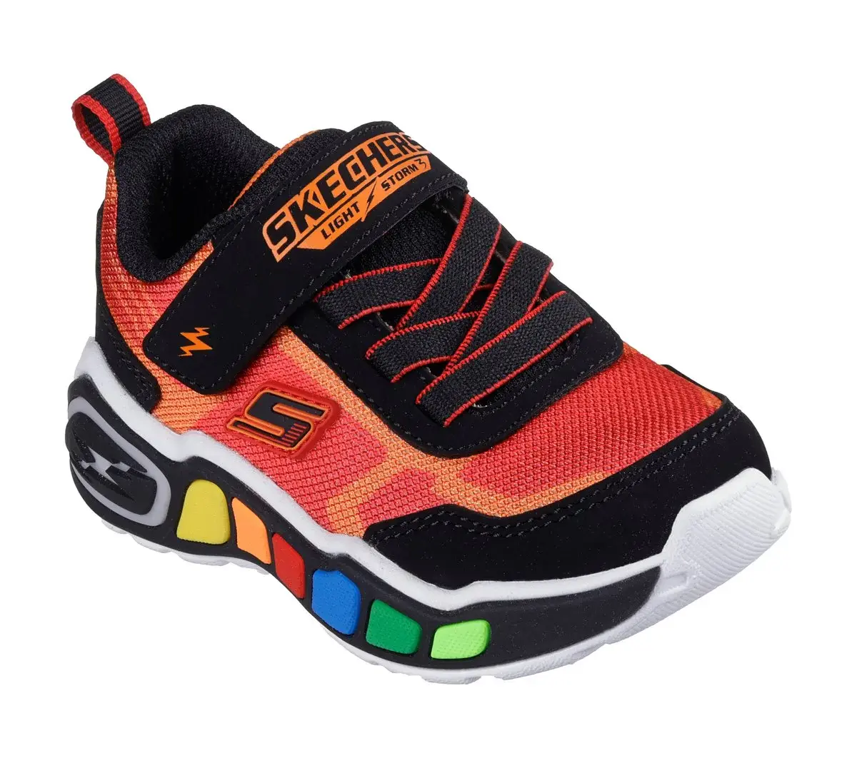 Sei der Spaß im farbenfrohen Leucht-Style mit Skechers Play Scene – Storm Brights. Dieses sportliche Leucht-Design verfügt über ein Obermaterial aus Mesh und Synthetik mit elastischen Schnürsenkeln, verstellbarem Spannriemen, gepolsterter Komfort-Innensohle und einem mehrfarbigen, leuchtenden Tech-Element in der Zwischensohle.