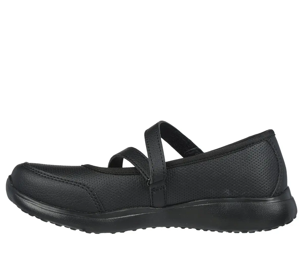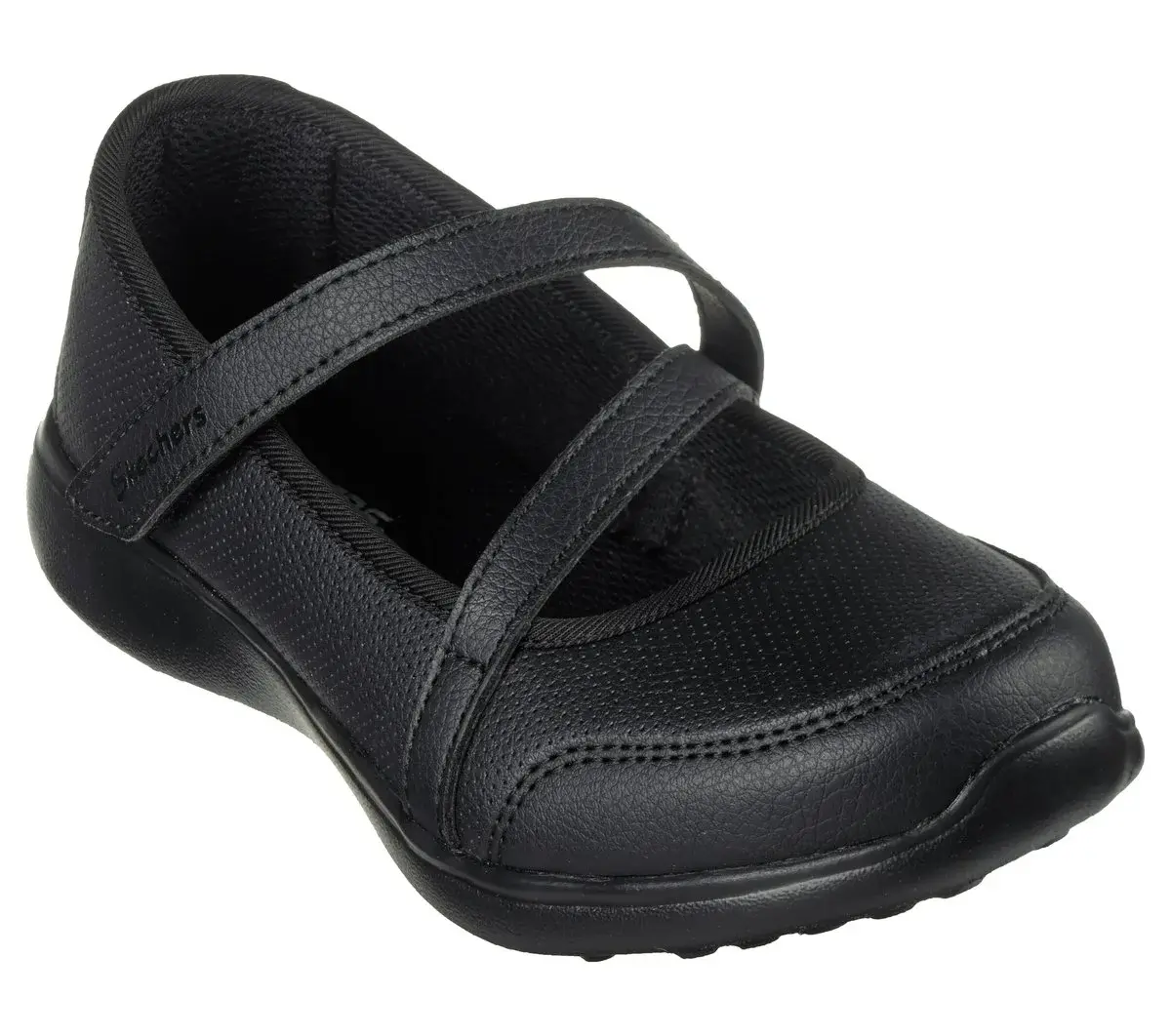 Peppen Sie den Schullook Ihrer Kinder bequem und stilvoll mit den Skechers Microstrides – School Bus Kicks auf. Dieser Mary-Jane-Schuh entspricht der Schuluniform und verfügt über ein leichtes Obermaterial aus Synthetik mit zwei verstellbaren Ristriemen und einer gepolsterten Komfort-Innensohle.