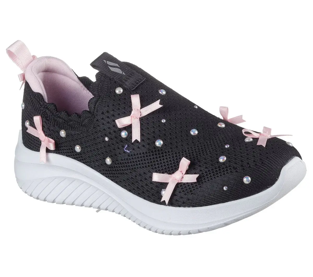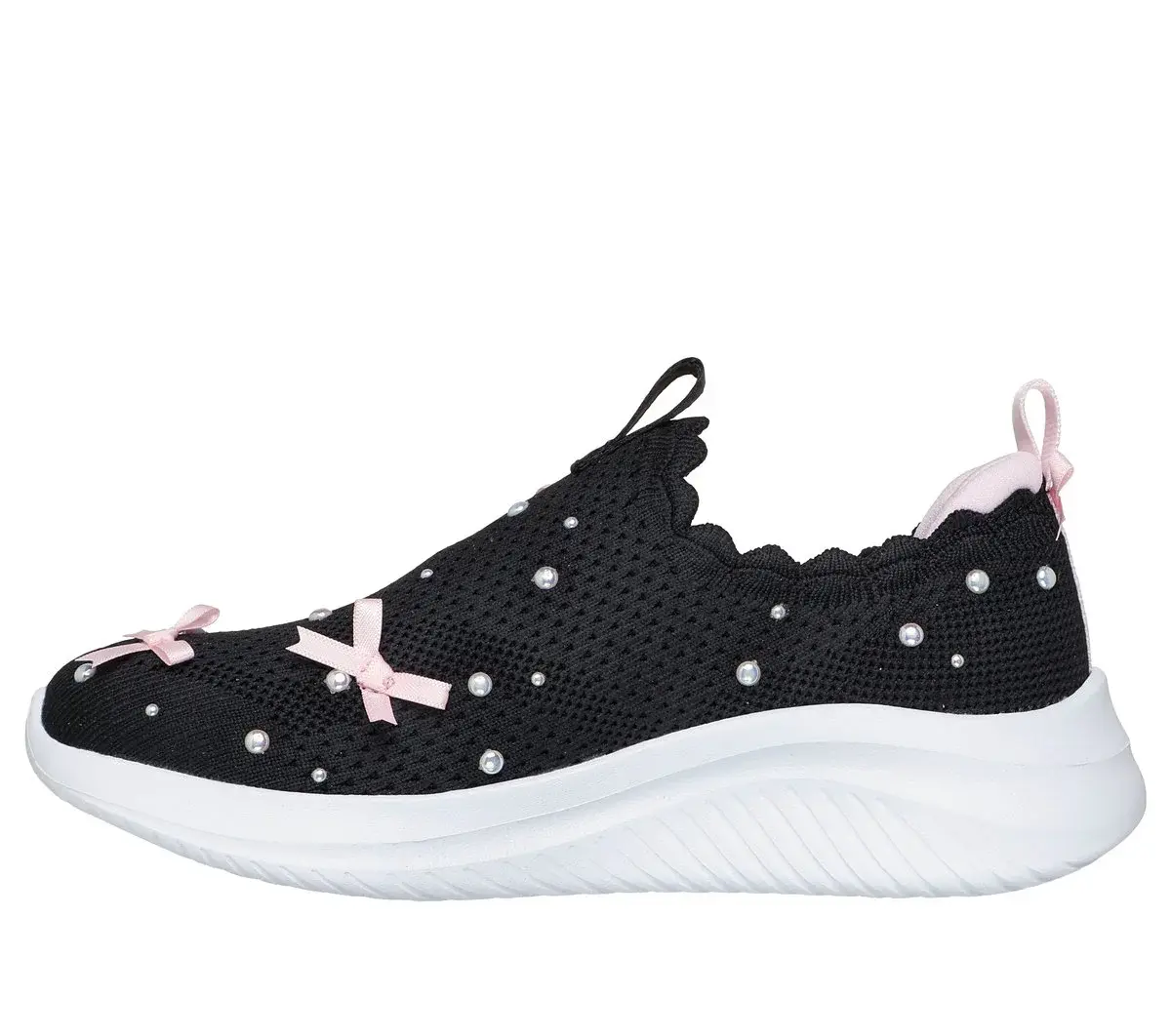 Gehen Sie mit dem bequemen Skechers Ultra Flex 3.0 – Bonita Bows in schickem Spaß und Komfort hinaus. Dieses schnürsenkellose Skechers-Design mit adaptivem Verschluss verfügt über ein Obermaterial aus Stretch Fit®-Strick mit Perlen- und Schleifenverzierungen sowie eine gepolsterte Skechers Air-Cooled Memory Foam®-Einlegesohle.